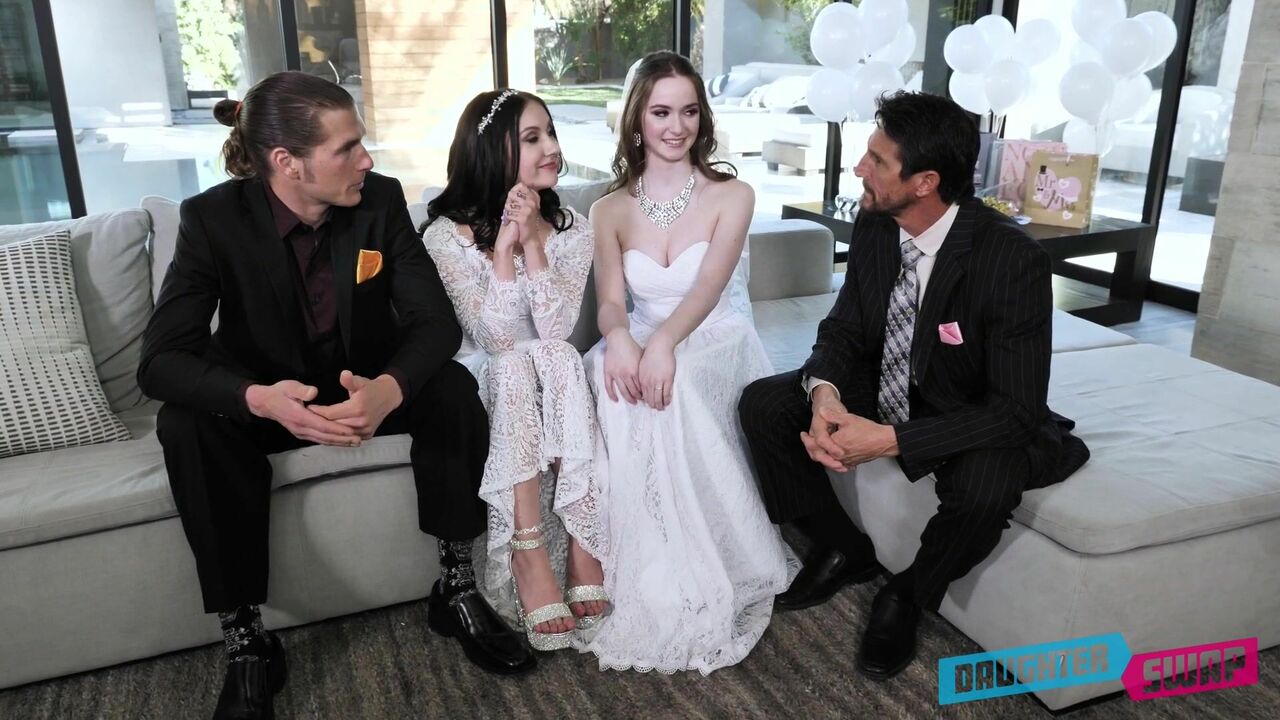 欧美两对刚结婚的新人为了追求性爱刺激互相商量交换新娘操穴,穿着婚纱啪啪插起来特别舒爽销魂抽送比赛浪叫猛搞